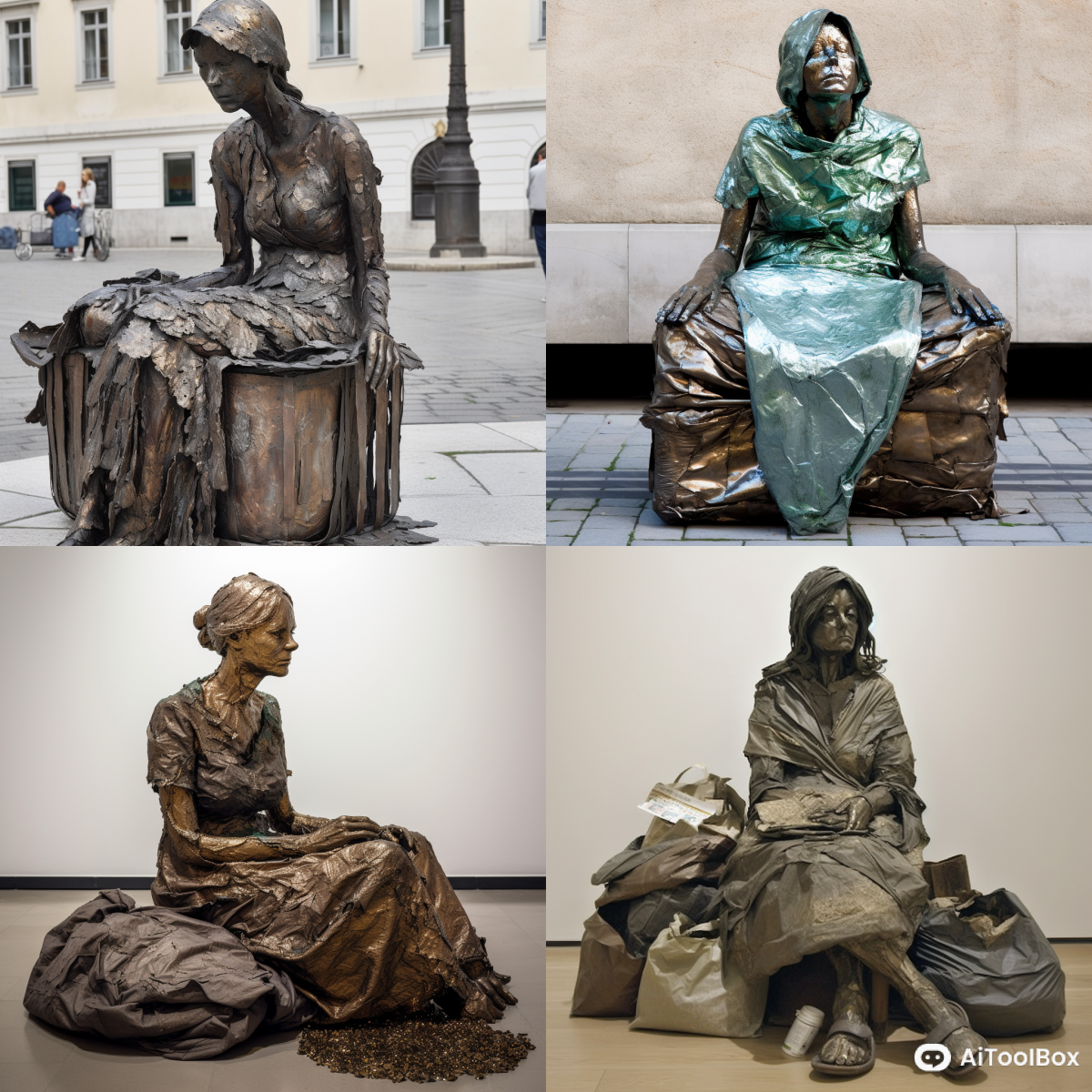 在Midjourney中的一种概念艺术,通过使用贫穷、不寻常或大众化的材料来表达反传统、反资本主义的思想。