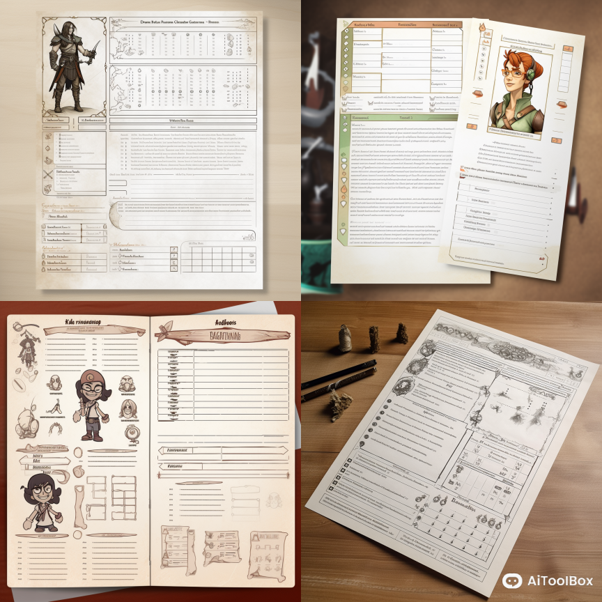 在Midjourney里面,"character sheet" 通常用于角色扮演游戏中,它是一个包含角色信息的表格或卡片。角色卡可以包括角色的姓名、种族、职业、属性、技能、装备和背景等信息。玩家可以使用角色卡来记录和管理自己的角色信息,也可以使用它来与其他玩家和游戏主持人交流。角色卡可以帮助玩家更好地理解和塑造自己的角色,也可以帮助游戏主持人了解每个角色的特点和能力,以便制定游戏策略和故事情节。在设计角色卡时,需要考虑到游戏的类型和规则,以及玩家的需求和喜好
