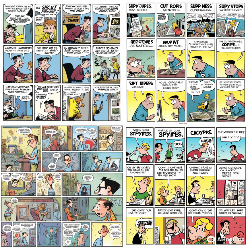 在Midjourney里面,"comic strips" 是一种叙述故事的视觉艺术形式,通常由多幅图画组成,每幅图画都包括一个或多个面部表情、文字气泡和场景描述。连环漫画可以用于讲述各种类型的故事,如幽默、恐怖、科幻等等。它可以帮助读者更好地理解和感受故事情节,并且可以通过图画和文字来传达情感和思想。在设计连环漫画时,需要考虑到故事的主题、受众和情感表达等因素,以确保连环漫画的表现形式与故事内容相一致。