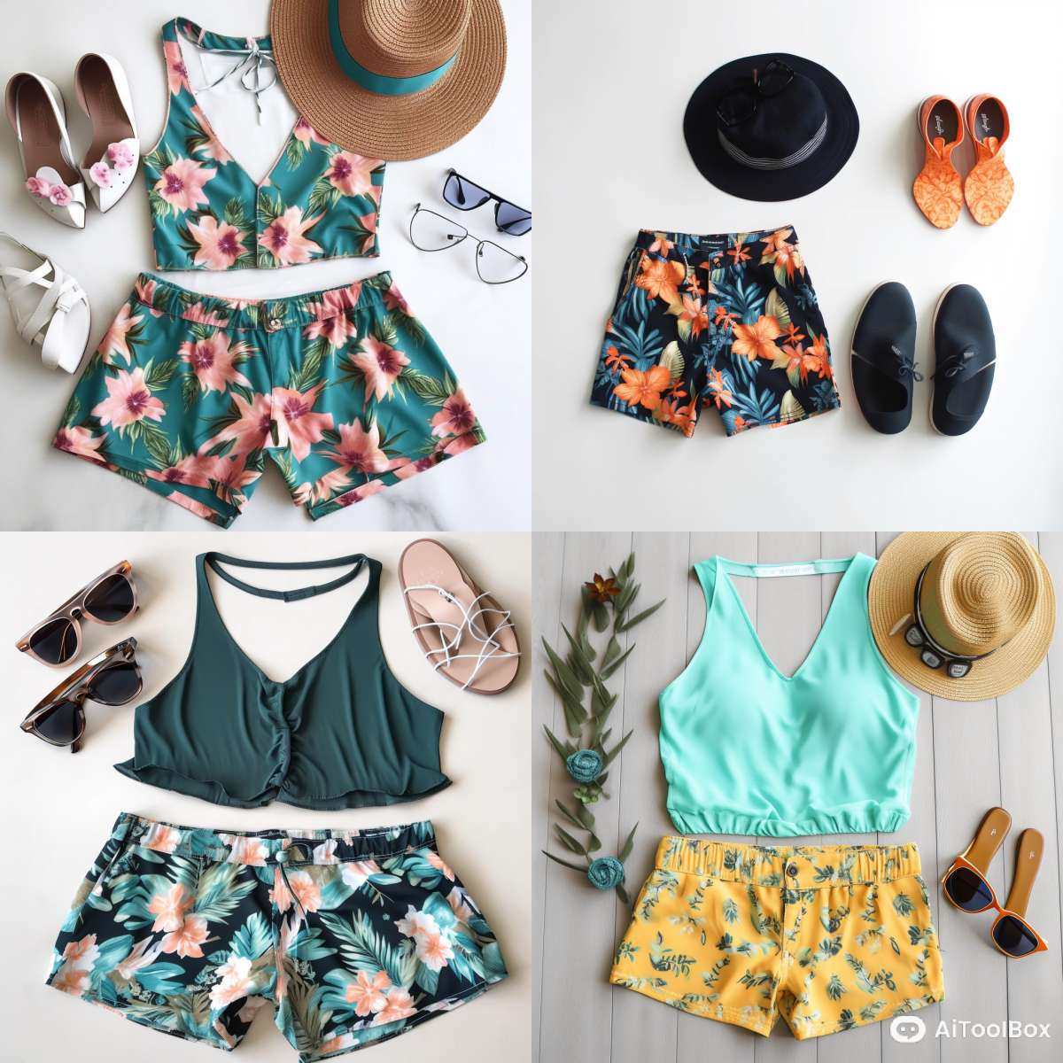 以泳装为主要元素的装扮,常常搭配太阳镜、宽檐帽等。