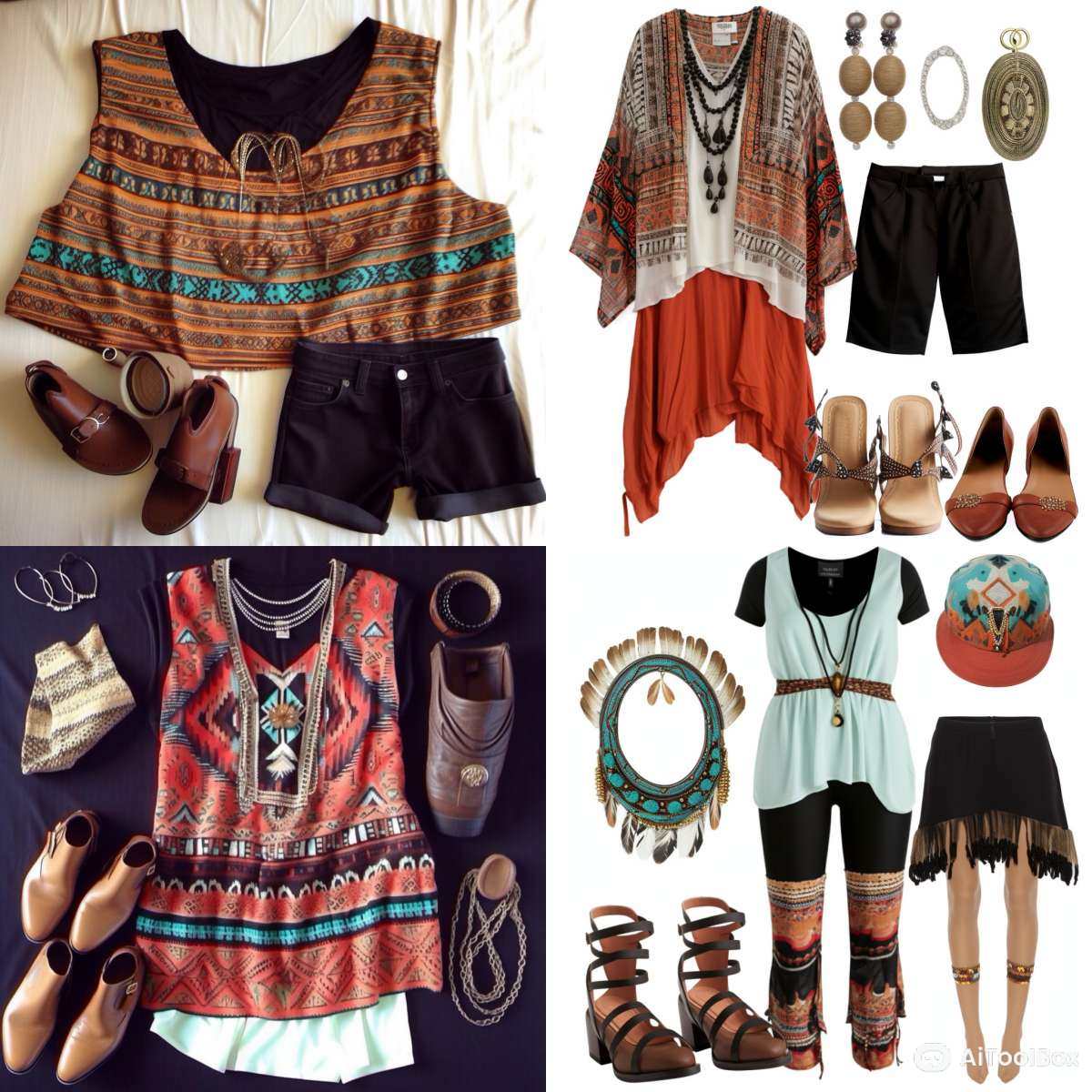 以部落文化为灵感的装扮,包括印花、披肩、手工编织等。