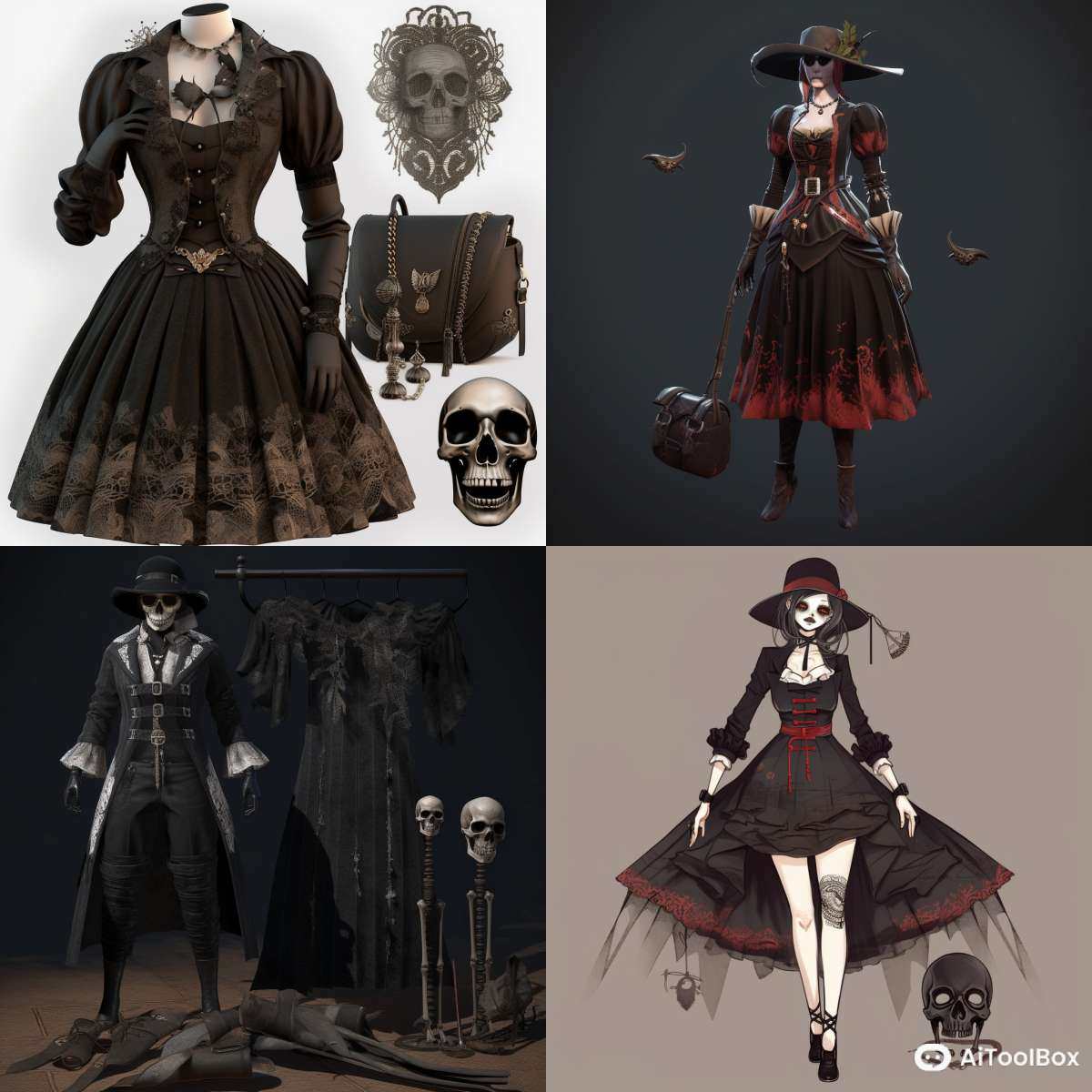 在Midjourney中以黑色、金属元素、骷髅图案为特点的服饰风格。